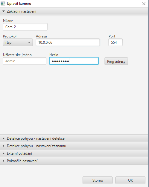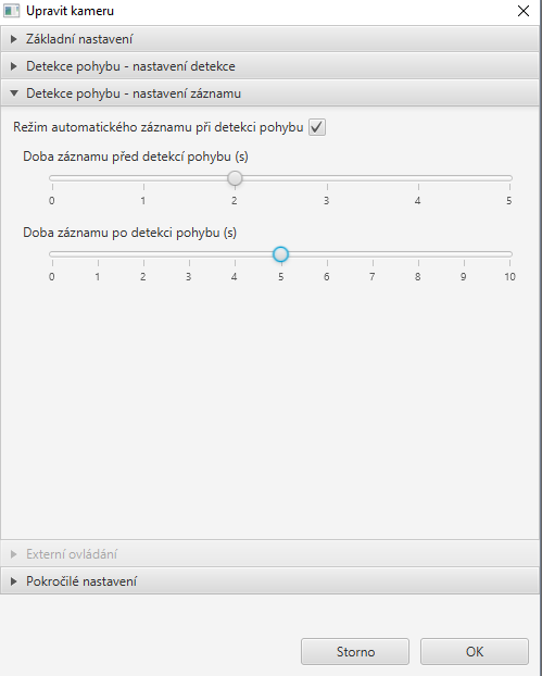 - detekce pohybu s možností nastavení citlivosti, nastavitelné pro každý zdroj zvlášť